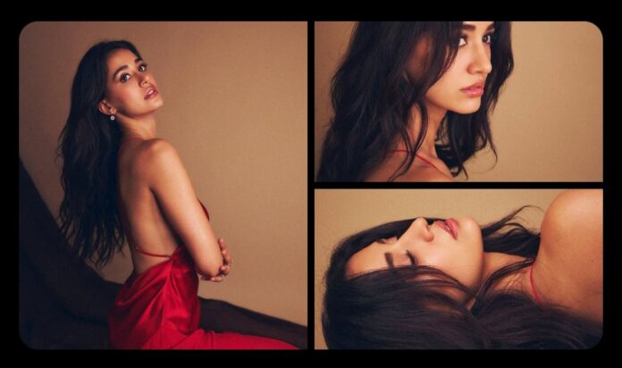 Among the many striking frames, one image that particularly caught attention shows Disha Patani in a vibrant red slip dress with thin straps and a low-back design. In the photo, she is seated sideways, looking over her shoulder with a calm yet confident expression. The elegant pose, combined with the bold color, perfectly highlights her toned physique and graceful posture.